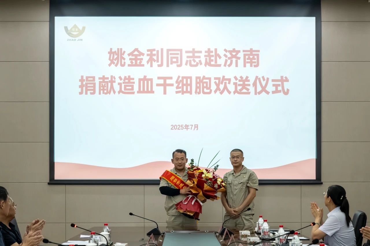 7月11日上午,招远市第10位、招金集团第6例、招金矿业第4例造血干细胞捐献志愿者姚金利同志赴济南捐献欢送仪式在招金大厦隆重举行。这位来自夏甸金矿的“00后”,用实际行动诠释了人间大爱、生命至上的精神,用他的纯粹与高尚续写了招金人大爱无疆的责任与担当。