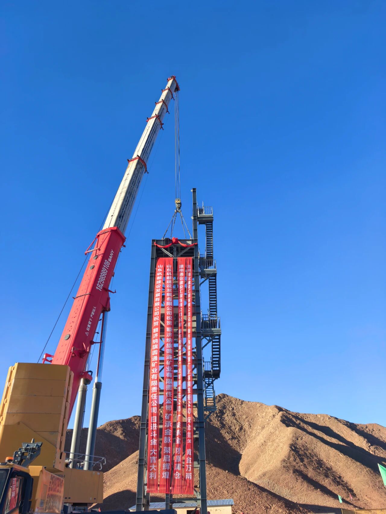 近日,额济纳旗圆通矿业有限责任公司提升系统升级改造主井井架顺利完成安装,成为阿拉善地区第一家完成多绳摩擦式提升系统升级改造的企业,打造了安全发展提升新标杆。